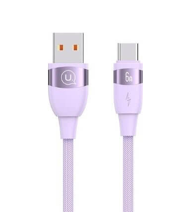 USAMS US-SJ631 USB-C叉電線 USB充電線 USB轉Type-C 6A鋁合金快充數據線2米(紫色)